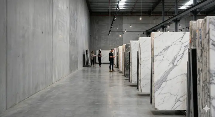 Натуральный камень — живой материал. Скачки температуры и влажности «разгоняют» микротрещины и меняют оттенок. Наш склад — климатическая зона с контролем датчиков. Ваш слэб доживает до цеха в том же состоянии, в котором приехал с карьера.